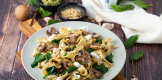 Потребно: 400 г тестенини 250 г печурки 200 г маскарпоне кора од 1 лимон 1 чешне лук Маслиново масло Сол Подготовка: Сварете ги тестенините во солена...