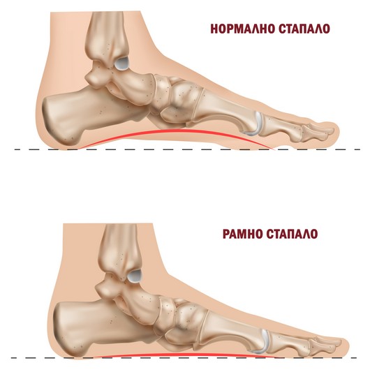 PES PLANUS (рамно стапало) претставува спуштен или целосно исчезнат свод на внатрешната страна од стапалото. Кај педијатриската популација е чест и се смета за физиолошки до 5–6 годишна возраст кога се очекува да исчезне масното перниче присутно од неонатална возраст. Родителите го препознаваат најчесто проблемот кога малечките се жалат на замор при одење, болка во стапалата и специфично деформирање на обувките. Причини за појава на овој деформитет се слаби мускули и лигаменти, генетска предиспозиција, примена на несоодветни обувки. Препораката за превенција и третман би се состоела од примена на соодветни обувки со цврст дел на петицата, а флексибилен преден дел од обувките, ортопедски влошки по препорака на физијатар или ортопед и примена на вежби со препорака на стоење на прсти, движење боси по нерамен терен (трева, песок).