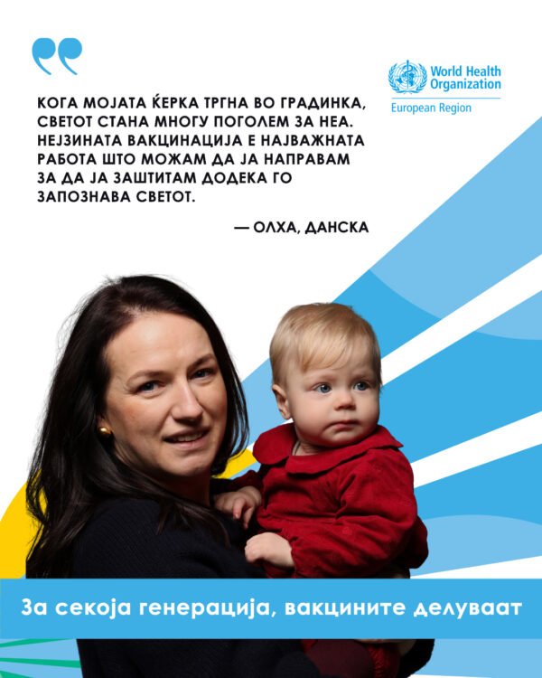 По повод Европската недела на имунизацијата, разговараме со д-р Соња Ралева, специјалист по општа медицина во Службата за превентивна здравствена заштита на претшколски и школски деца „Бит-пазар“ – докторка која секојдневно е на првата линија во заштитата на здравјето на децата. Како прва точка на контакт за родителите, таа не е само стручен авторитет, туку и глас на доверба кога станува збор за вакцинацијата. Д-р Ралева е секогаш подготвена да одговори на прашањата, дилемите и грижите на семејствата, нудејќи јасни, разбирливи и сигурни информации, базирани на научни докази.