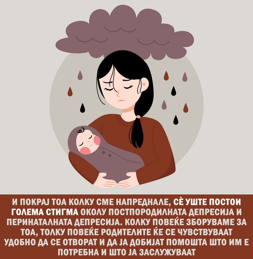 „И покрај тоа колку сме напреднале, сè уште постои голема стигма околу постпородилната депресија и перинаталната депресија. Колку повеќе зборуваме за тоа, толку повеќе родителите ќе се чувствуваат удобно да се отворат и да ја добијат помошта што им е потребна и што ја заслужуваат“, вели Гварнота. (Everyday Health)