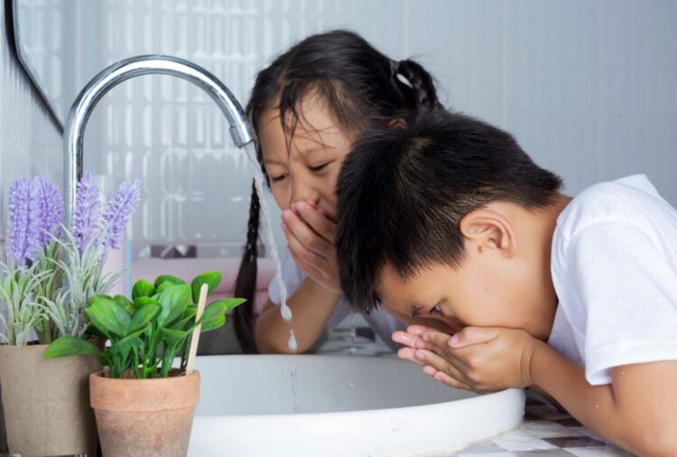 Децата уште на двегодишна возраст, преку игра и со помош на родителите, учат да ја плакнат устата со вода (честопати благо посолена) пред да продолжат со дневните активности