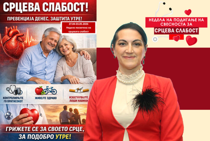 Светската недела за подигнување на свесноста за срцевата слабост (27 април до 3 мај 2026 год.) ги потсетува луѓето дека многу ризик-фактори се контролираат: високиот крвен притисок, дијабетесот, покачените маснотии во крвта, обезноста, пушењето, физичката неактивност