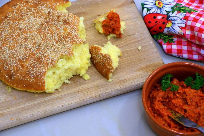 Подготовка: Измешајте ги сувите состојки во голем сад, а потоа додадете ги влажните состојки со минимално мешање. Тестото веднаш се префрла во намастен калап. Рерната треба да се загрее на 200 степени пред печење, а погачата се пече додека не добие темно златна боја. Добар апетит!