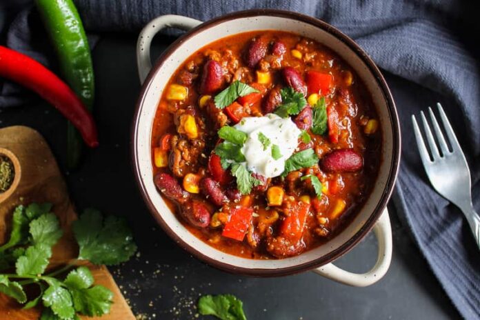 Подготовка: Во голем сад, прво загрејте го маслиновото масло и додадете го ситно сечканиот кромид. Пржете го додека не стане проѕирен, потоа додадете го сечканиот лук и пржете го кратко за да ја ослободи својата арома. Додадете го меленото говедско месо и пржете го додека не ја промени бојата и не порумени лесно. Во оваа фаза, додадете го кимот, чадената пиперка, солта и биберот и добро измешајте сè за да се распределат зачините рамномерно. Потоа додадете го доматното пире, сечканите домати и исечканите пиперки. Намалете ја топлината и оставете сè да крчка околу 15 минути за да се спојат вкусовите. Конечно, додадете го исцедениот црвен грав и продолжете со готвењето уште 15 до 20 минути, мешајќи повремено, додека сосот не се згусне. Добар апетит!