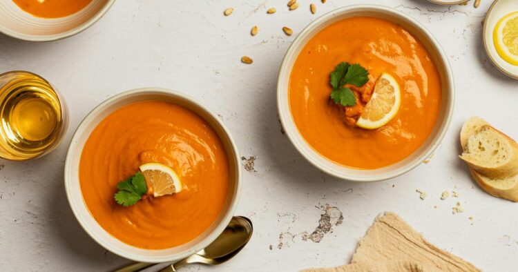 Подготовка: Во голем сад загрејте го путерот или маслото, додадете го исечканиот кромид и пржете на тивок оган додека не стане проѕирен, 5 – 7 минути. Додадете го згмечениот лук и пржете накратко. Потоа додадете го исчистениот и исечкан зеленчук, зачинете со сол и прелијте го со зеленчуковата супа за да го покрие зеленчукот. Оставете да зоврие, намалете ја топлината и варете на тивок оган, покриено, 15 – 20 минути, додека зеленчукот не омекне. Тргнете од оган и блендирајте со рачен блендер или во блендер додека не добиете мазна смеса. Ако супата е премногу густа, додадете повеќе супа или вода до саканата густина. Вратете на тивок оган, додадете павлака по вкус (150-200 мл) и загревајте без да зоврие 2-3 минути. Зачинете со сол и црн пипер по вкус. Сервирајте топло, наросено со сечкан магдонос и неколку капки маслиново масло. Добар апетит!