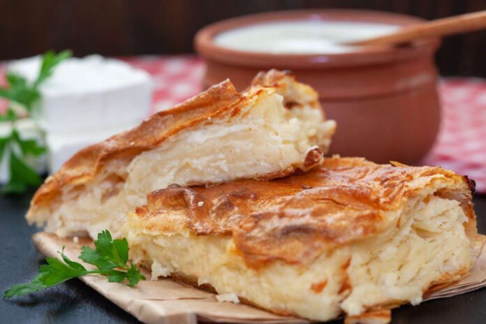 Подготовка: Во голем сад, измешајте го јогуртот, киселата вода, маслото, млекото, сирењето и прашокот за печиво. Добро измешајте додека состојките не се соединат и филот не стане кремаст. Ставете неколку кори за пита на плех обложен со хартија за печење за да послужат како основа. Оставете ги рабовите на корите да ги преклопуваат рабовите на плехот, бидејќи подоцна ќе се превиткаат врз гибаницата. Изгужвајте ги и потопете ги преостанатите кори во подготвената смеса, а потоа наредете ги една по една врз основата. Повторете го процесот додека не ги потрошите сите состојки. На крајот, преклопете ги рабовите на корите што штрчеа преку рабовите врз филот. Загрејте ја рерната на 200°C и ставете ја гибаницата во рерна. Печете 30–40 минути, додека не поруменат и не се почувствува аромата на крцкави кори и сирење. Извадете ја питата од рерна и оставете да се олади неколку минути, потоа исечете ја на парчиња и послужете го со чаша јогурт. Добар апетит!