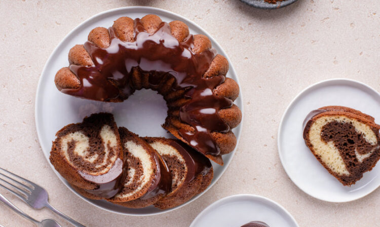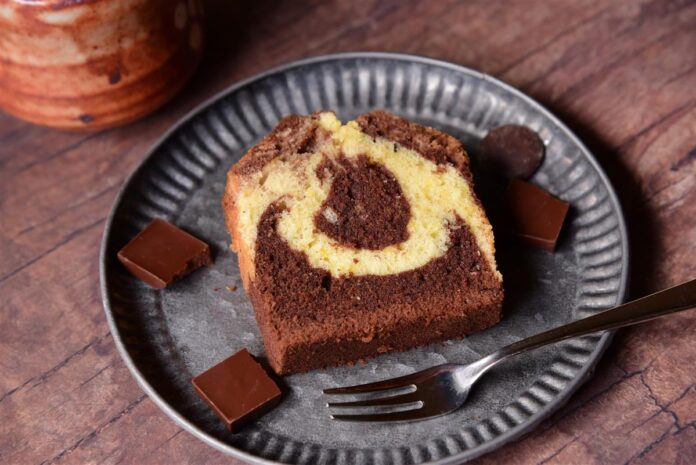 Подготовка: Обложете калап за леб (25–30 см) со хартија за печење или намачкајте го со путер и наросете со брашно. Изматете ги јајцата со шеќерот и ванилиниот шеќер додека не добиете лесна и пенаста смеса. Додадете го јогуртот и маслото и кратко измешајте. Просејте го брашното и прашокот за печиво и соединете сè во мазна смеса. Поделете ја смесата на два еднакви дела. Додадете какао и млеко во едниот дел и добро измешајте. Ако е премногу густа, додадете уште малку млеко. Наизменично сипувајте ја светлата и темната смеса во калапот. Со нож, лесно повлечете неколку линии низ смесата за да создадете мраморен ефект. Печете во претходно загреана рерна на 180 °C, 45 минути. Оставете го колачот да се олади 10 минути во калапот, а потоа извадете го на решетка. Исечете го кога целосно ќе се олади. Добар апетит!