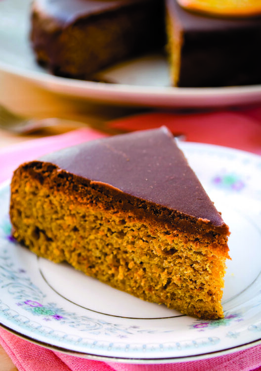 Подготовка: Вклучете ја рерната на 180°C. Подмачкајте и набрашнете правоаголен плех (20 x 30 см). Измешајте ги морковите, јајцата, маслото и шеќерот во блендер додека не добиете мазна смеса. Истурете во сад, додадете брашно и нежно мешајте. На крајот, додадете прашок за печиво и кратко мешајте. Истурете ја смесата во тавата и печете 30 минути. Тестирајте со чепкалка за заби – треба да излезе сува. Растопете го чоколадото и путерот на тивок оган или во микробранова печка (во интервали од 30 секунди). Оставете да се олади неколку минути, потоа додадете шеќер и јајца и добро измешајте. Додадете брашно и какао, кратко измешајте за да остане густа и кремаста маса. Истурете ја чоколадната смеса врз веќе испечената торта од моркови и внимателно израмнете ја со шпатула. Вратете во рерна и печете уште 20 минути. Проверете со чепкалка за заби: делот од морковот треба да биде сув, а делот од чоколадото малку леплив. Оставете ја тортата да се олади 10-15 минути, а потоа внимателно извадете ја од тавата. Сервирајте изладена или на собна температура. Добар апетит!