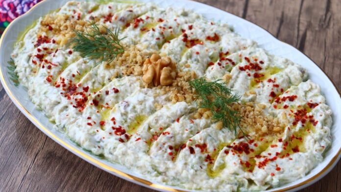 Подготовка: Во огноотпорен сад или плех ставете ги излупените чешниња лук, сусамот и маслиновото масло. Печете во претходно загреана рерна на 170 степени околу 25-30 минути, додека лукот не стане златно-кафеав и не омекне. Можете да додадете и малку сок од лимон или рендана кора од лимон. Во голем сад измешајте го сирењето со сечканиот магдонос, додадете сол и бибер. Додадете го печениот лук и малку масло од садот, а потоа изгмечете сè додека не добиете мазна, кремаста смеса. Прелијте ја салатата со преостанатото масло за готвење врз салатата и, по желба, наросете со мелена лута пиперка. Сервирајте со предјадења или печено месо. Добар апетит!