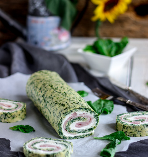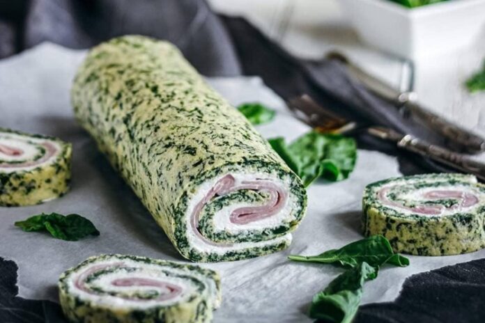 Подготовка: Матете ги јајцата со малку сол додека не побелат, потоа додадете масло. Додадете ги одмрзнатите брикети од блитва кои сте ги исцедиле од вишокот вода, потоа нежно додадете брашно измешано со прашок за печиво. Рамномерно распоредете ја смесата на плехот обложен со хартија за печење и израмнете го. Печете во претходно загреана рерна на 180 степени околу 20 минути, додека кората не добие малку златна боја. Извадете ја печената кора, завиткајте ја во ролат со помош на чиста крпа и оставете ја да се олади малку. За филот, измешајте павлака и крем сирење додека не добиете мазна смеса. Ситно исечкајте ги варените јајца, саламата и киселите краставички. Внимателно одвојте ја кората од хартијата, покријте ја со слој фил, потоа наредете ја саламата, наросете сечкани јајца и кисели краставички и нежно извиткајте сè во ролат. Завиткајте во фолија и оставете во фрижидер најмалку 30 минути да се стегне. По желба, оставете неколку лажици фил за да ја покриете надворешната страна на ролатот, а потоа наросете малку рендан кашкавал одозгора. Оставете го во фрижидер некое време, а потоа исечете го на прстени со остар нож. Добар апетит!