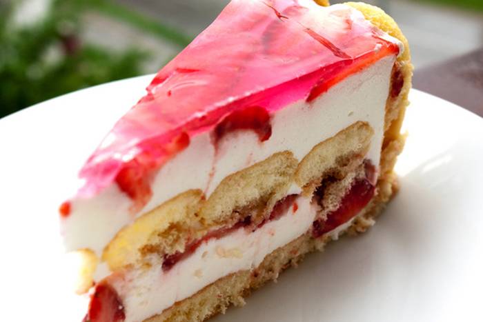 Подготовка: Матете ги јајцата и шеќерот околу пет минути, додека смесата не стане лесна, густа и пенеста. Додадете го маслото и млекото и нежно мешајте. Измешајте го брашното и прашокот за печиво и просејте го во смесата и нежно мешајте рачно. Истурете ја смесата во калапот и печете на 180 °C околу 20-25 минути, потоа целосно изладете го пандишпанот и малку навлажнете го со малку млеко или сок по желба. Сварете го пудингот во млеко со шеќер и мешајте го повремено додека се лади за да остане мазен. Нежно измешајте ја претходно изматената слатка павлака во млакиот пудинг. Намачкајте го кремот врз пандишпанот, додадете го овошјето и прелијте го со лесен прелив за торта по желба. Добар апетит!