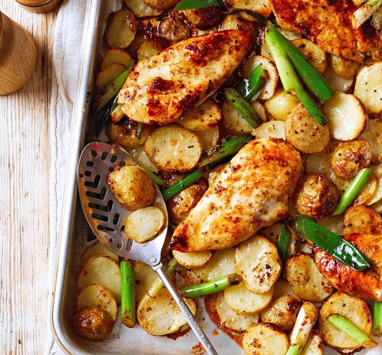 Подготовка: Загреј ја рерната на 200°C. Во голем сад, стави ги тиквата, компирите, морковите, кромидот и лукот. Зачини со сол, бибер, рузмарин и малку маслиново масло. Промешај сè убаво. Распредели ја смесата рамномерно во тавче за печење. Зачини го пилешкото со сол, бибер, црвена пиперка и малку маслиново масло, па постави го врз зеленчукот. Стави сè во рерна и печи околу 45–50 минути, или додека пилешкото не добие златно-кафеава кора, а зеленчукот не омекне. По желба, пред крајот можеш да додадеш и малку мед или балсамико за карамелизирање. Добар апетит!