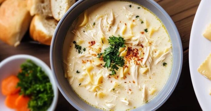 Подготовка: Пилешкото месо исечкајте го на покрупни парчиња и ставете го да се вари во вода со малку сол. Кога ќе омекне, извадете го, а течноста зачувајте ја. Во тенџере растопете путер (или загрејте масло) и додајте го ситно сечканиот кромид. Пропржете кратко додека стане стаклест. Додадете го ренданиот морков, ситно сечканиот компир и лукот. Промешајте и оставете да се динствува 2–3 минути. Додаете ја лажицата брашно, брзо промешајте и постепено налевајте од течноста во која се вареше пилешкото, мешајќи за да нема грутки. Додадете го пилешкото месо и оставете ја чорбата да крчка 10–15 минути, додека зеленчукот целосно не омекне. Со рачен блендер изблендирајте ја чорбата до кремаста текстура. Додадете млеко или павлака, промешајте и загрејте уште 1–2 минути (да не зоврие силно). По потреба додадете сол и многу малку бибер. На крај посипете со ситно сечкан магдонос. Добар апетит!