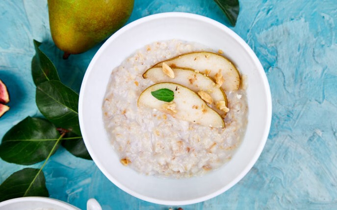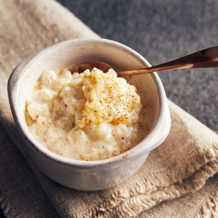 Подготовка: Прво исплакнете го оризот под млаз вода, а потоа ставете го во тенџере. Додадете го млекото и прстофат сол и гответе на тивок оган околу 20 до 25 минути, мешајќи повремено. Кога оризот ќе омекне, а смесата ќе стане густа и кремаста, додадете го шеќерот или медот и ванилата. Добро промешајте и тргнете од оган. Исечкајте ги крушите на коцки. Растопете го путерот во тенџере, додадете ги крушите, медот и циметот и варете на тивок оган околу пет до седум минути, додека овошјето не омекне и малку не карамелизира. Поделете го готовиот пудинг во чинии и додадете ги топлите круши одозгора. Сервирајте веднаш или оставете малку да се олади. Добар апетит!