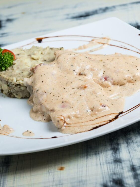 Подготовка: Филето исечете го на медалјони дебели околу еден сантиметар. Посолете и забиберете го месото и пржете го во загреан тавче во масло и путер само две до три минути од секоја страна. Важно е да не се препечат медалјоните во оваа фаза, бидејќи подоцна ќе се зготват во сосот. По пржењето, месото привремено извадете го од тавчето. Во истиот тавче додадете сенф, кратко промешајте за да се соедини со маснотијата и соковите од месото. Потоа во тавчето додадете ја водата или бујонот, и кога течноста малку ќе се намали, додадете ја павлака за готвење. Гответе го сосот, мешајќи постојано, додека не ја достигне саканата густина. Пред крај вратете ги медалјоните во тавчето, и оставете да се готват во сосот уште неколку минути. Тогаш месото апсорбира дополнителни ароми, а целото јадење ја добива таа препознатлива кремаста нота. Свинските медалјони во сос одлично се комбинираат со пире од компири или печени компири, но исто така и со тестенини или ориз. Добар апетит!