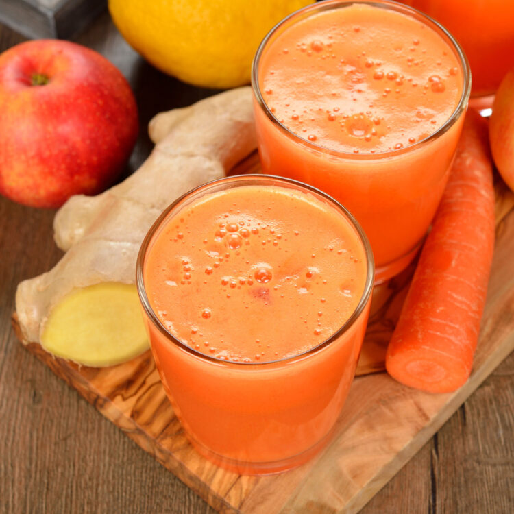 Подготовка: Измијте ги сите состојки и излупете ги доколку е потребно, не е потребно да го лупите јаболкото. Исечете ги на помали парчиња, ставете ги во блендер, додадете вода и мед и блендирајте додека не добиете мазен пијалак. Најдобро е да го испиете веднаш по подготовката. Јаболкото придонесува за подобро варење и функција на цревата, портокалот обезбедува добра доза на витамин Ц, кој го поддржува имунитетот и доброто расположение, додека морковите се познати по своите корисни ефекти врз кожата и црниот дроб. Ѓумбирот ја стимулира циркулацијата и може да помогне во намалувањето на надуеноста. Една чаша дневно е доволна, а идеално време за консумирање е наутро на празен стомак или попладне како поздрава замена за грицки. По само неколку дена редовно консумирање, многу луѓе забележуваат чувство на леснотија и подобро варење. Добар апетит!