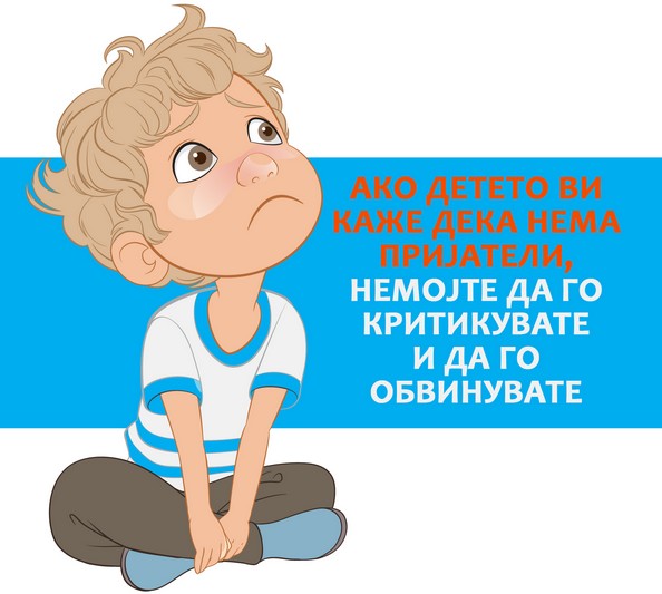 Ако ви каже дека нема пријатели, не го критикувајте и не го обвинувајте. Подобри прашања би биле: „Зошто мислиш дека е така?“ или „Што би сакал да направиш во врска со тоа?“ односно „Како можам да ти помогнам?“