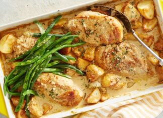 РЕЦЕПТ НА ДЕНОТ: Кремасто пилешко филе со компири и моркови во рерна